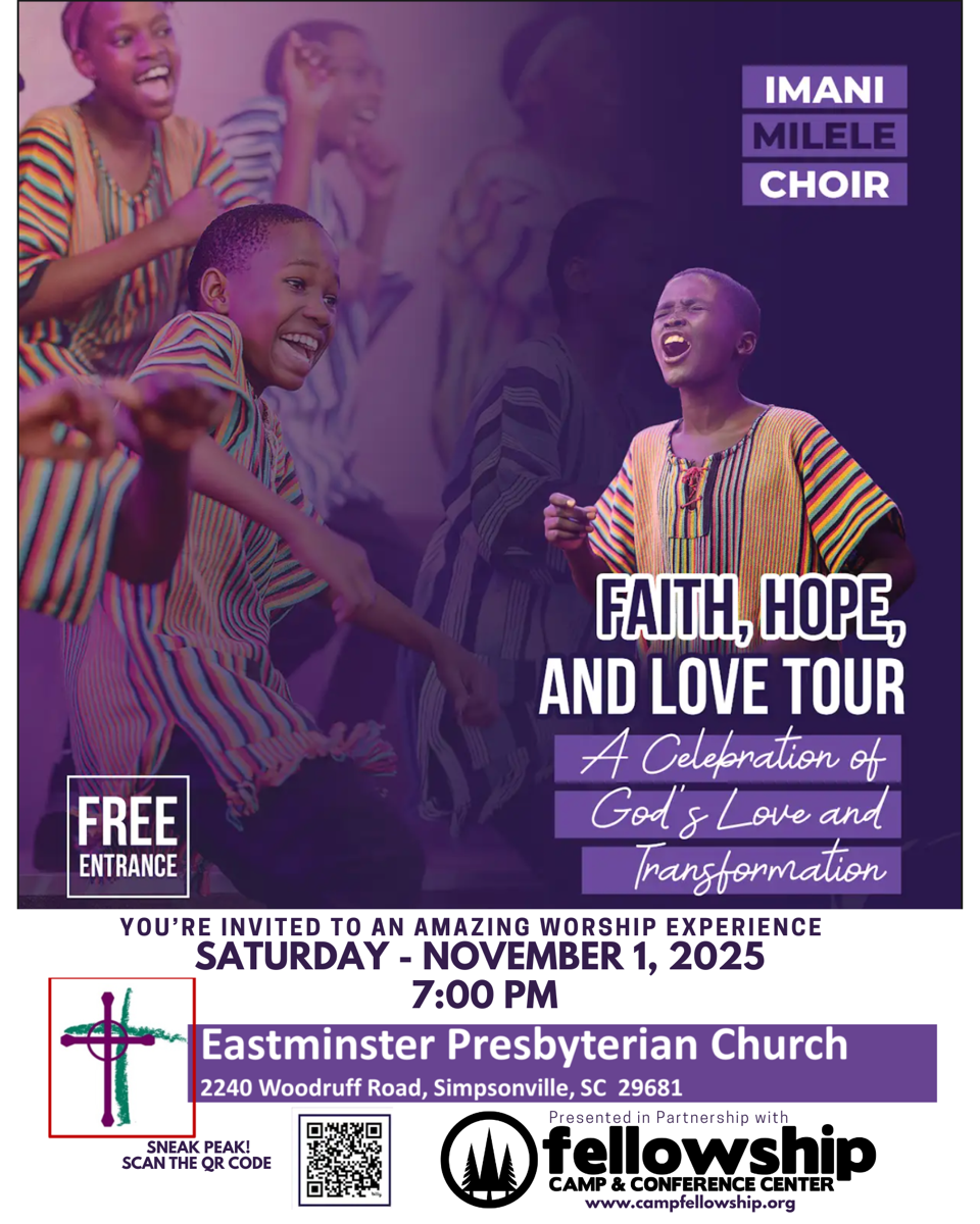 This year’s GOAL Community Problems Assembly will be held on November 6, 2025 at Long Branch Baptist Church, located at 28 Bolt Street, Greenville, SC 29605. This is the meeting where folks interested in voting on the issues GOAL will address in the coming year are invited to attend and make their preferences known. All attendees get one vote, so Eastminster will have an impact here proportional to our attendance numbers. Let’s turn out in force for this important meeting!