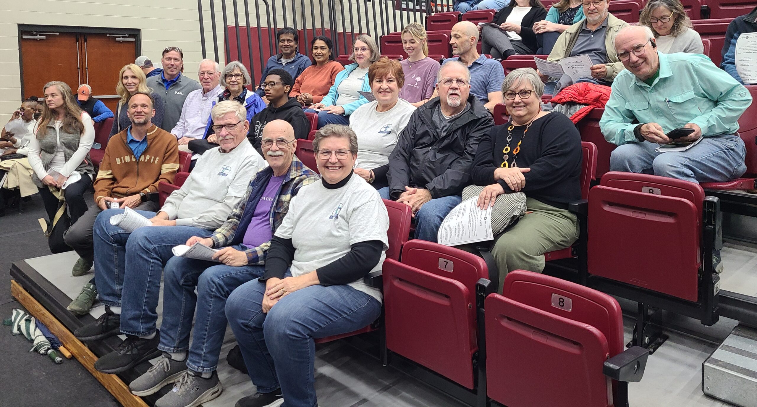 Each Fall, members of our congregation are invited to attend house meetings to share stories and concerns about community needs. These are collected by GOAL leadership, and after collating the input from across all member churches, we all meet together to democratically select two priorities for the coming year. Examples of priority areas in the past few years include affordable housing, reducing evictions, mental health, and pedestrian safety. Subcommittees for each focus area are then charged with researching these areas of concern and proposing solutions. This effort culminates with the attendance of 30-50 EPC congregants and friends as we join with about 2000 other faith community members at the Nehemiah Action meeting each Spring. During this gathering, the focus areas and proposed solutions are shared with the attendees and invited Greenville city and county elected officials.